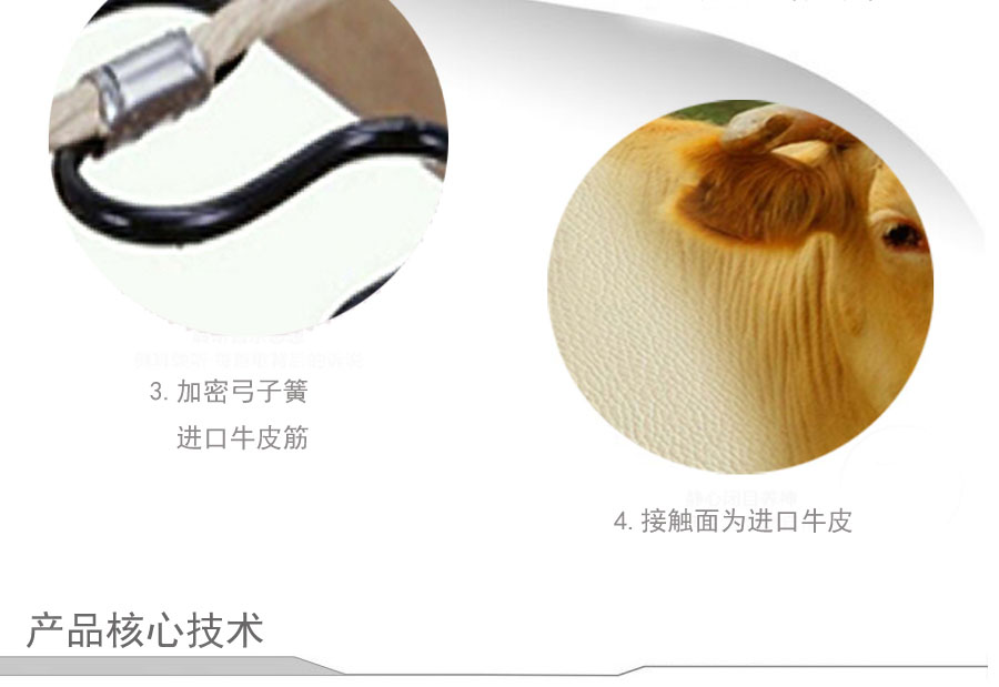 2、進口優質牛皮——人體接觸舒適,高貴大方,經久耐用。